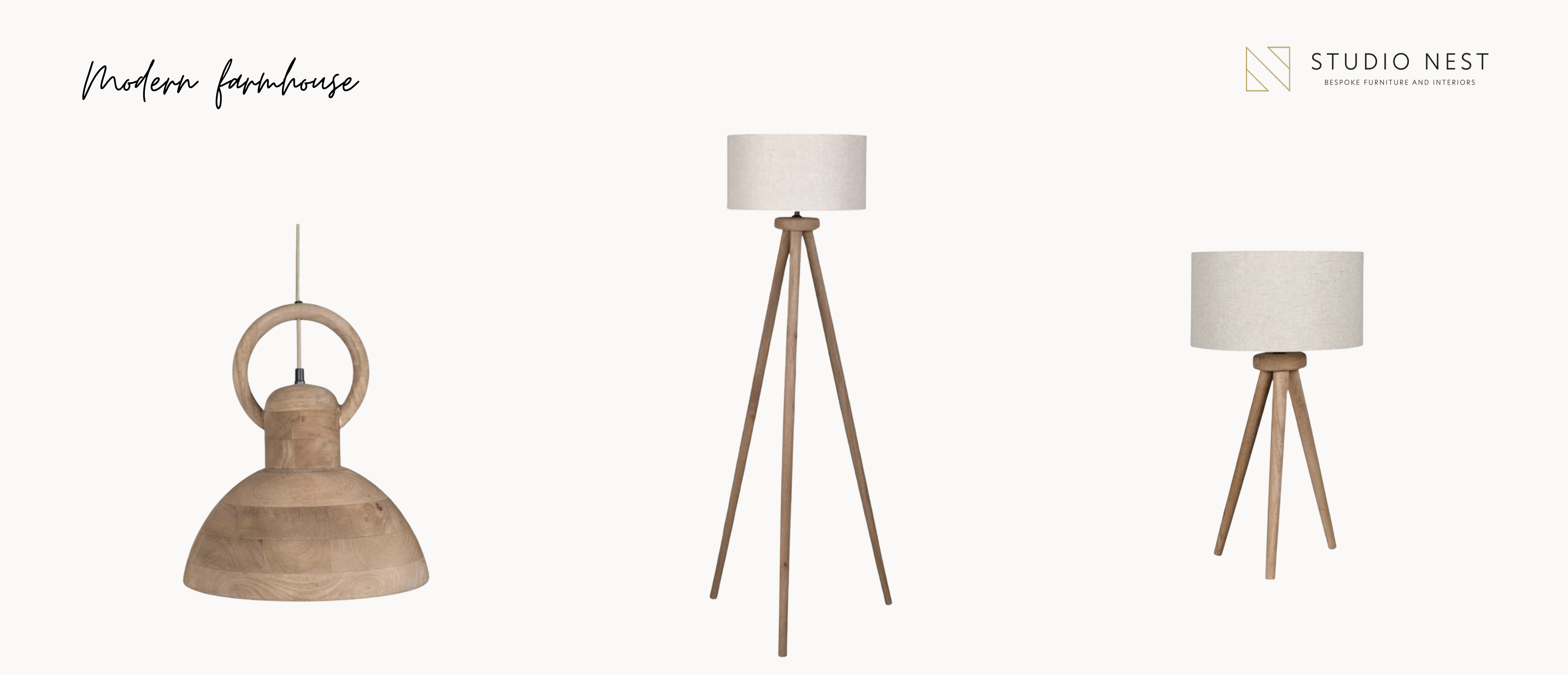 Each style includes a curated selection of furniture and lighting, from brass wall lights to linen dining chairs, giving you a tangible way to achieve the Studio Nest look in your own home.